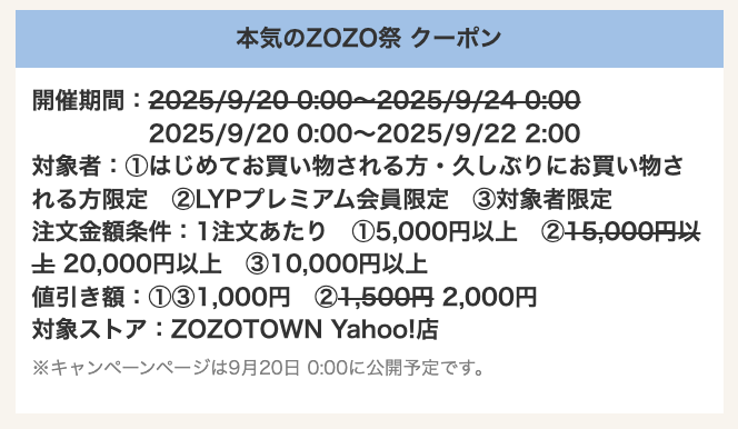 ただし、今回もLYPプレミアム会員の人を対象に20,000円以上の買い物が2,000円オフになるクーポンが配布される予定です。