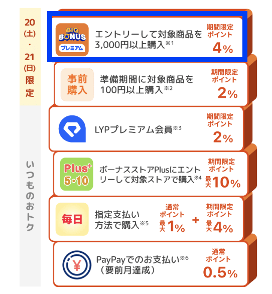 ビッグボーナスはLYPプレミアム会員なら6%上乗せ。