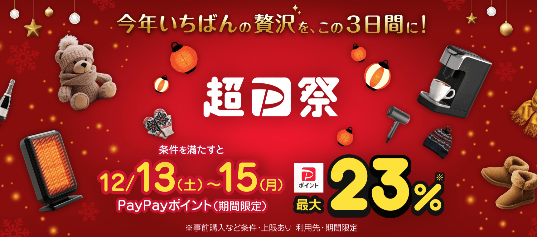 Yahoo!ショッピングで12月13日〜16日1:59にかけて超PayPay祭が開催されます!